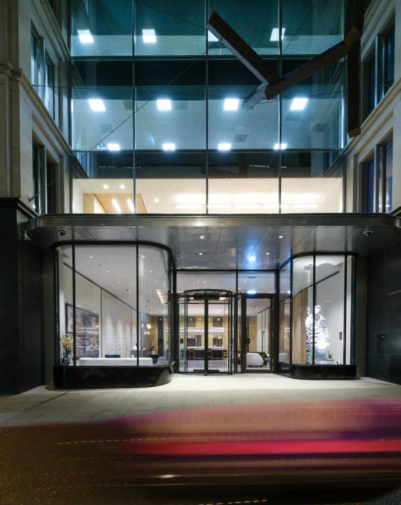IQ Projects were contracted by #SignatureLondon to create curved bay windows, along with a series of other bespoke glazing elements for the office renovation at 23 Savile Row. The key aspect of the curved glass design was the radius required for the corner elements of the bay windows. From a photographic point of view ..quite challenging! Daytime…too many reflections for the wide shots. So dusk was the best way to get some interesting images and to see through to the background of the main office.