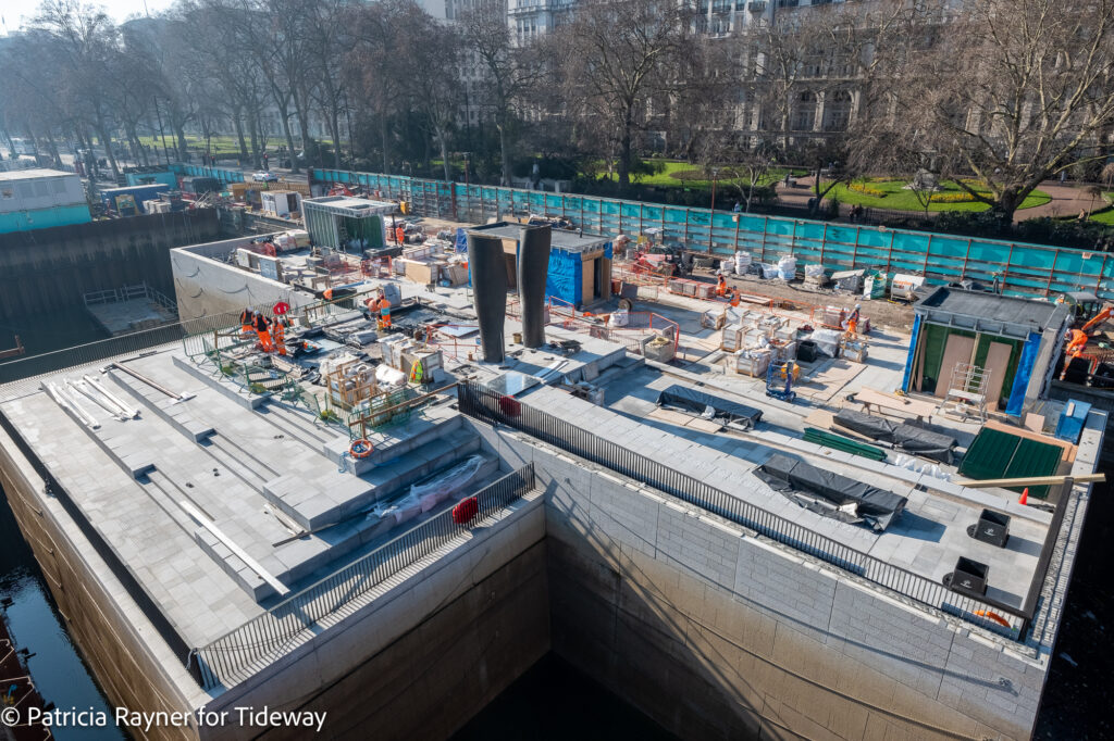 Latest Aerial views of #Tideway sites along the Thames. I fly by helicopter to photograph all 22 sites along the river. The Victoria Embankment site is one of the most visible and of course, one of the most photogenic. Work is underway to create a new public realm area along the embankment where Londoners can get adjacent to the river. Closer views of the Victoria site  show the beautiful paving and steps, where pedestrians will be able walk and savour beautiful views.